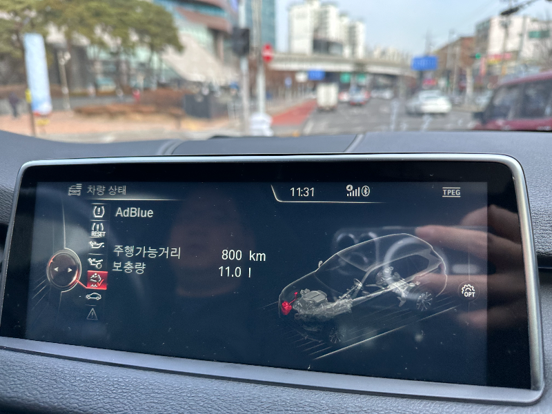 올 2월에 요소수 10L를 주입하고 12월까지 3천 km 정도 탔던 것 같아. 영하 10도 정도였던 날인데 주행하는 동안 adblue 사용 거리가 줄어들기 시작하더니 2400km 미만이라며 경고등이 나오기 시작했다. 얼마 지나지 않아 1200km, 800km 경고등이 추가로 나오기 시작했다.