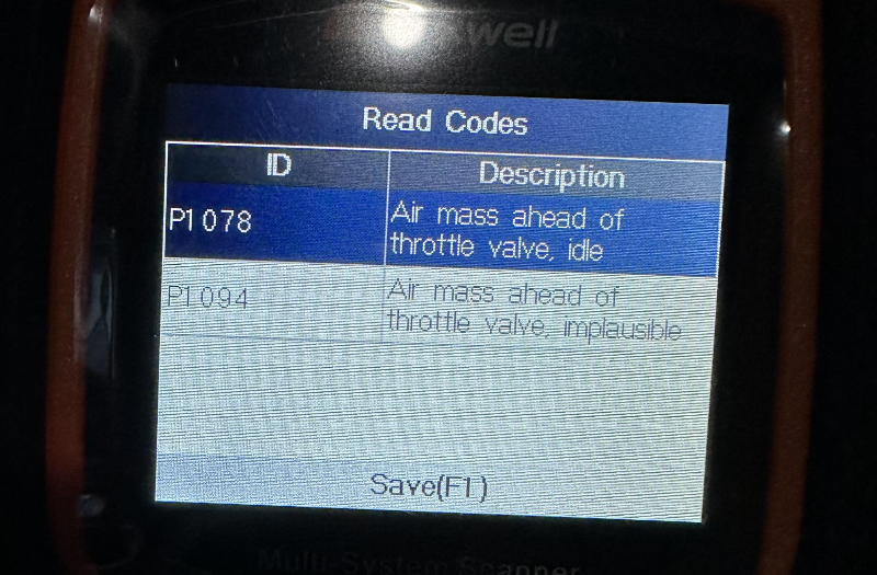 언제인지 정확히 기억나지는 않는데 스로틀밸브 세척했을 때쯤부터였던 것 같다. 뜯어서 세척하지는 않았고 마른걸레로만 닦아서 거뭇한 것들만 제거했었는데 그 뒤로 P1078, P1094 코드를 뱉어냈다.