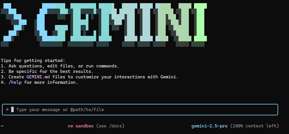 gemini-cli는 이름 그대로 Gemini 모델을 커맨드 라인 인터페이스(Command-Line Interface)에서 사용할 수 있게 해주는 도구입니다. 간단한 명령어를 통해 Gemini AI와 대화하고, 복잡한 작업을 요청하며, 그 결과를 터미널에서 바로 확인할 수 있습니다.